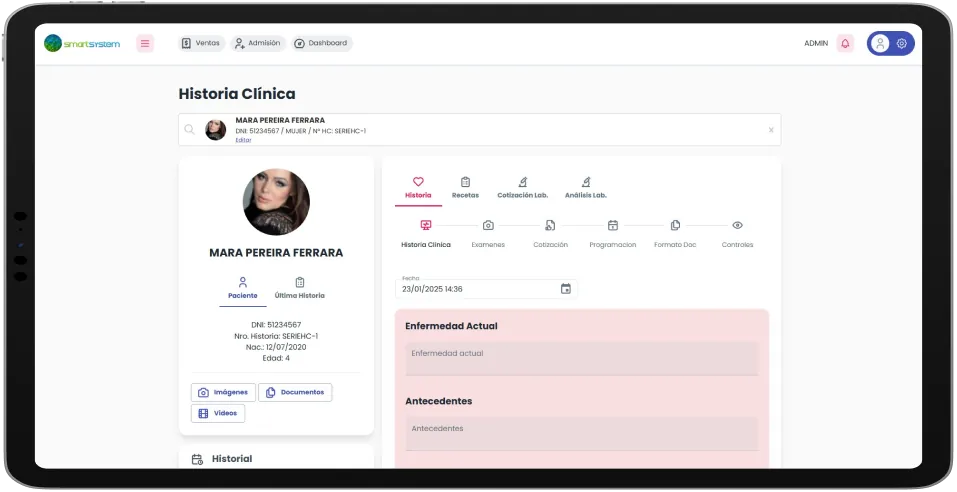 Accede a diagnósticos, exámenes y tratamientos en un visor digital completo.